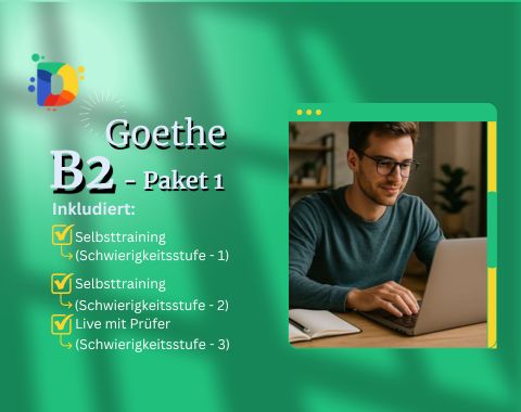 Das Goethe B2 – Prüfungssimulation Paket auf leichtem Niveau bietet Ihnen eine realistische, klar strukturierte und sehr wirkungsvolle Vorbereitung auf die echte Goethe B2-Prüfung.